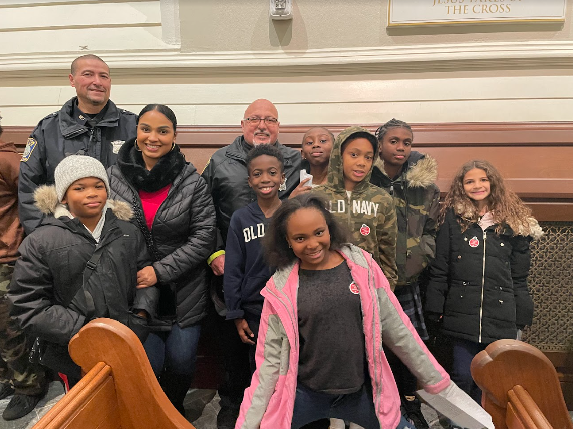 BPD in the Community: Officers assigned to the Community Service office of District E-5 (Roslindale/West Roxbury) attended the Corey’s Kids Christmas event last night at the Holy Cross Cathedral in the South End.