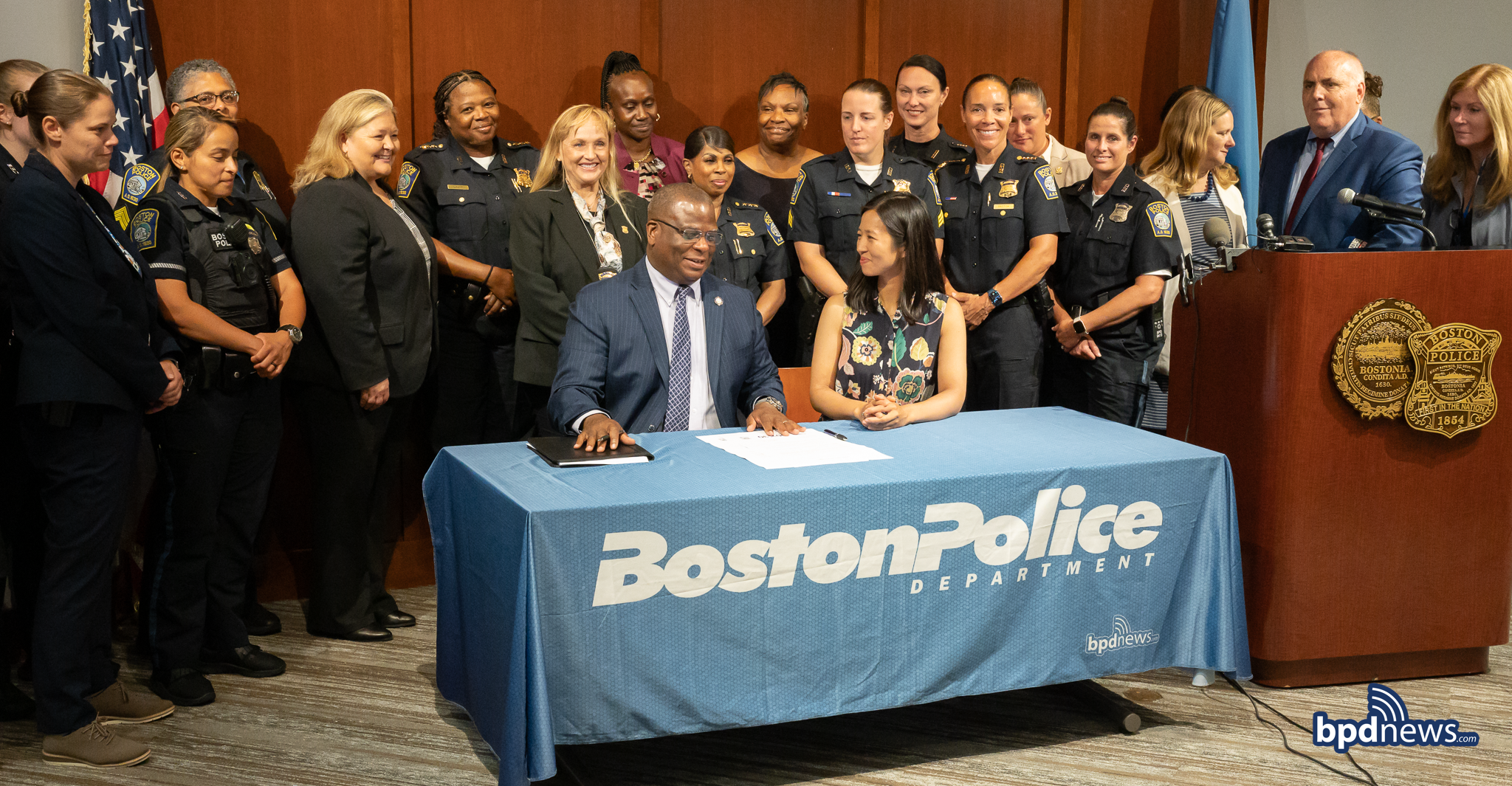 Last summer, Commissioner Cox was joined by Mayor Wu and representatives from MAWLE (Massachusetts Association of Women in Law Enforcement) to sign onto the 30 X 30 Pledge. It is a national initiative to have 30% of police department’s recruits be women by the year 2030.