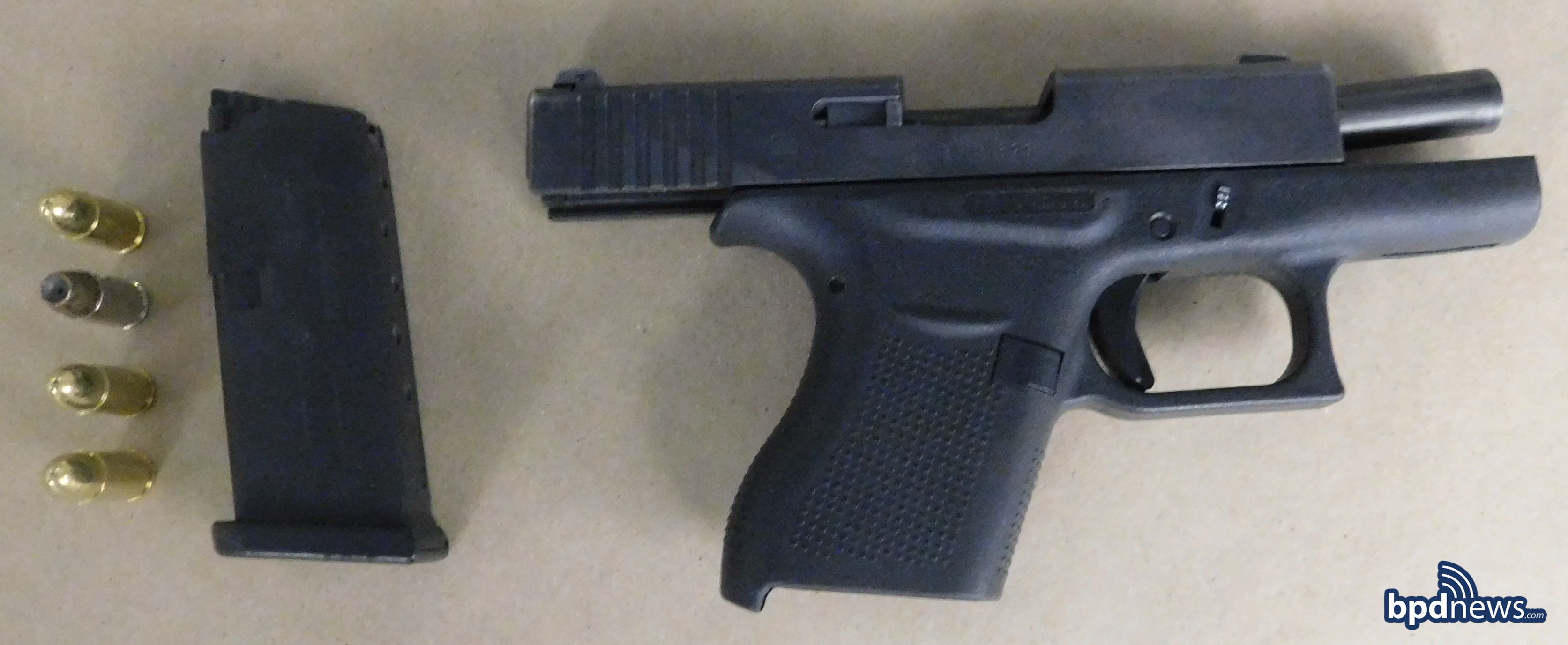 The firearm was later determined to be Glock 43 with four rounds in the magazine. Officers conducted a query of the firearm’s serial number which showed it to be stolen.