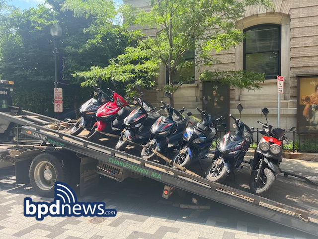 On Monday, July 8th, 2024, Officers assigned to D-4 (South End/Back Bay) were directed to patrol the Back Bay neighborhood while focusing on enforcing motor vehicle law violations involving mopeds and motorcycles. Throughout the patrol, Officers recovered thirteen (13) mopeds for various infractions, issued multiple Mass Uniform Citations, and arrested three (3) suspects on multiple offenses.