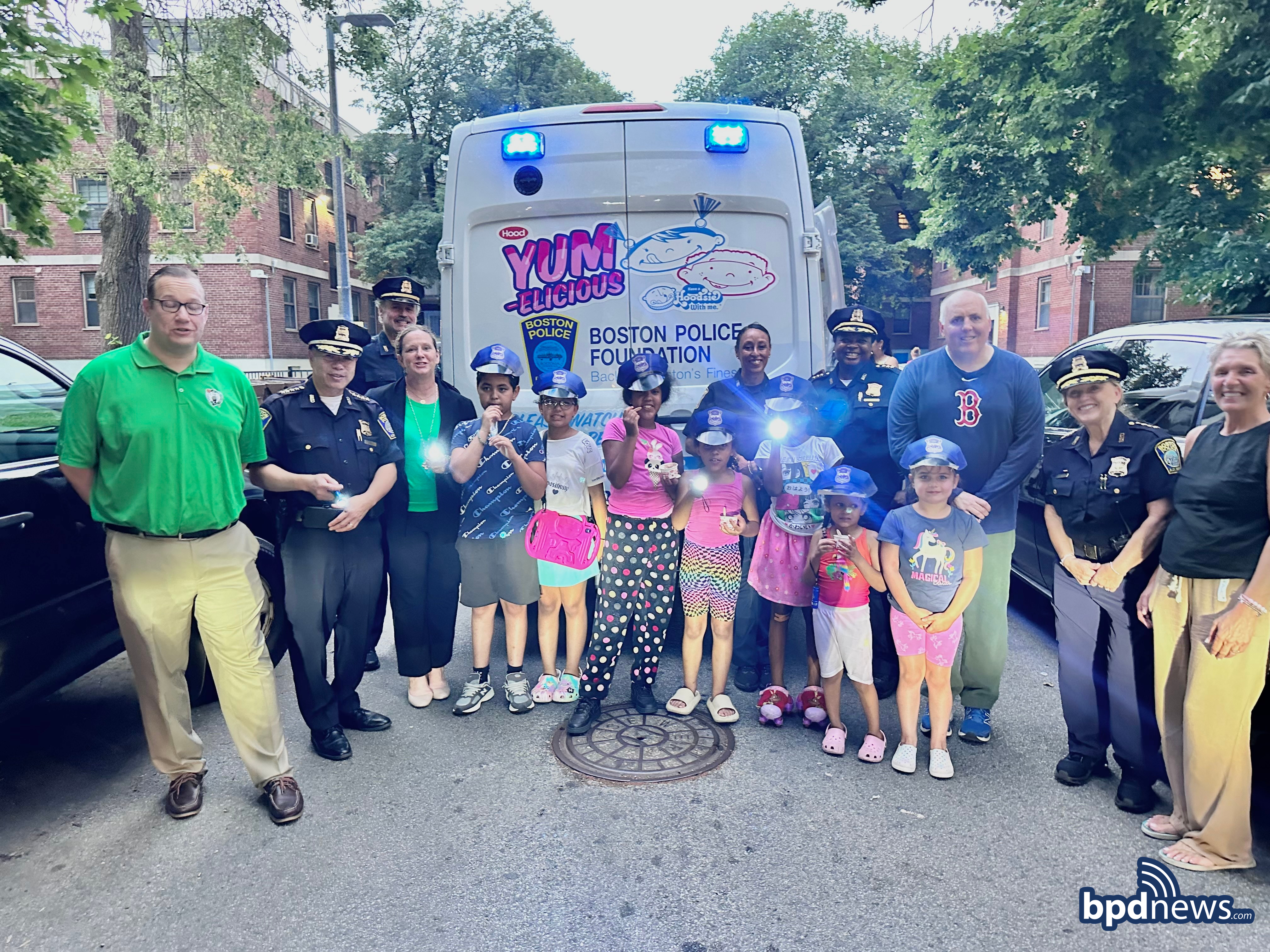 Our young participants received a BPD flashlight, a hat, and some delicious treats courtesy of the BPD Ice Cream Truck to help beat the heat. (Thanks to HP Hood!)