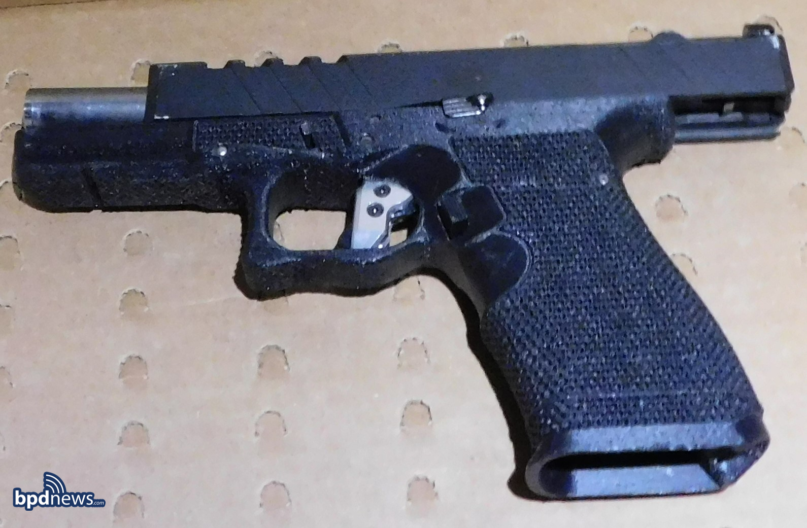 Officers began to canvass the flight path of the suspect, and recovered a discarded firearm. The firearm was later determined to be a Ghost Gun with seventeen rounds in a twenty-four round capacity magazine. Officers also recovered ballistic evidence on scene.