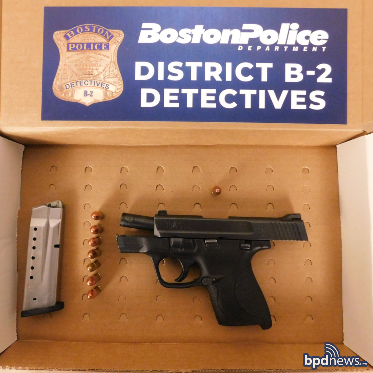 Officers investigated the occupants and the vehicle resulting in the recovery of a firearm inside Blackwell’s pants. District B-2 detectives determined the firearm to be a Smith & Wesson (M&P 9 Shield) with one (1) 9mm round in the chamber and a magazine capacity with seven (7) rounds.