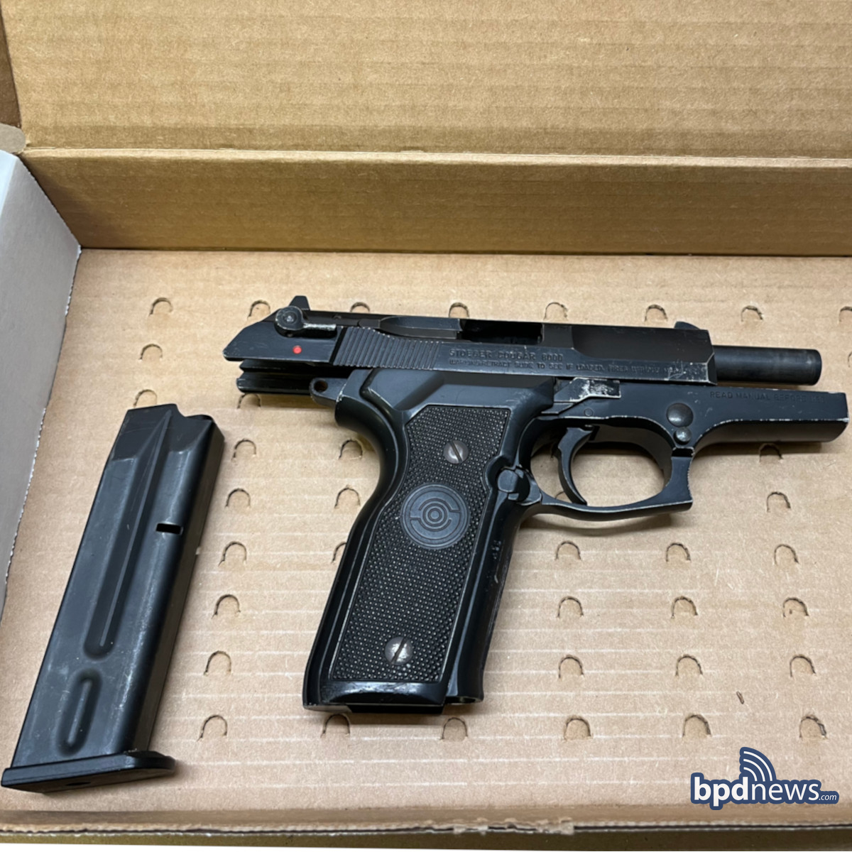The firearm was determined to be a “Stoger Cougar 3000” chambered in 9mm. The firearm was loaded with one (1) round in the chamber and nine (9) rounds in the magazine. Officers also located an additional magazine for the firearm inside Allison’s bag that was loaded with fifteen (15) rounds.