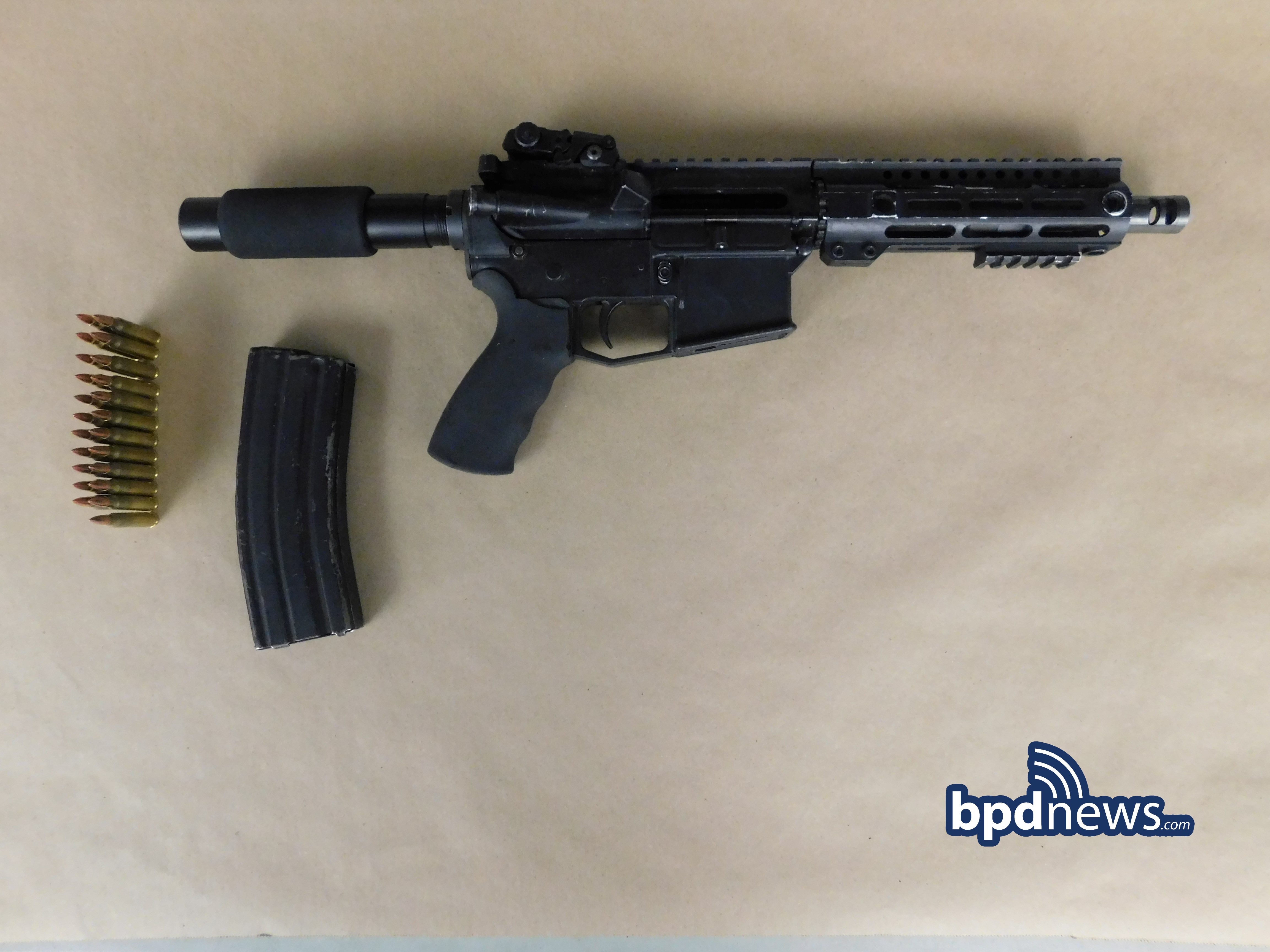 Upon arrival, officers canvassed the area and recovered multiple pieces of ballistic evidence in the side parking lot of 11 Balfour Street. During an expanded search of the area, officers located a black .223 caliber rifle inside a black duffle bag along with a white t-shirt on the front landing of 9 Balfour Street. Additional ballistic damage was located on a vehicle parked on Howard Avenue, at 28 Cunningham Street, and a basketball hoop near Howard Avenue.