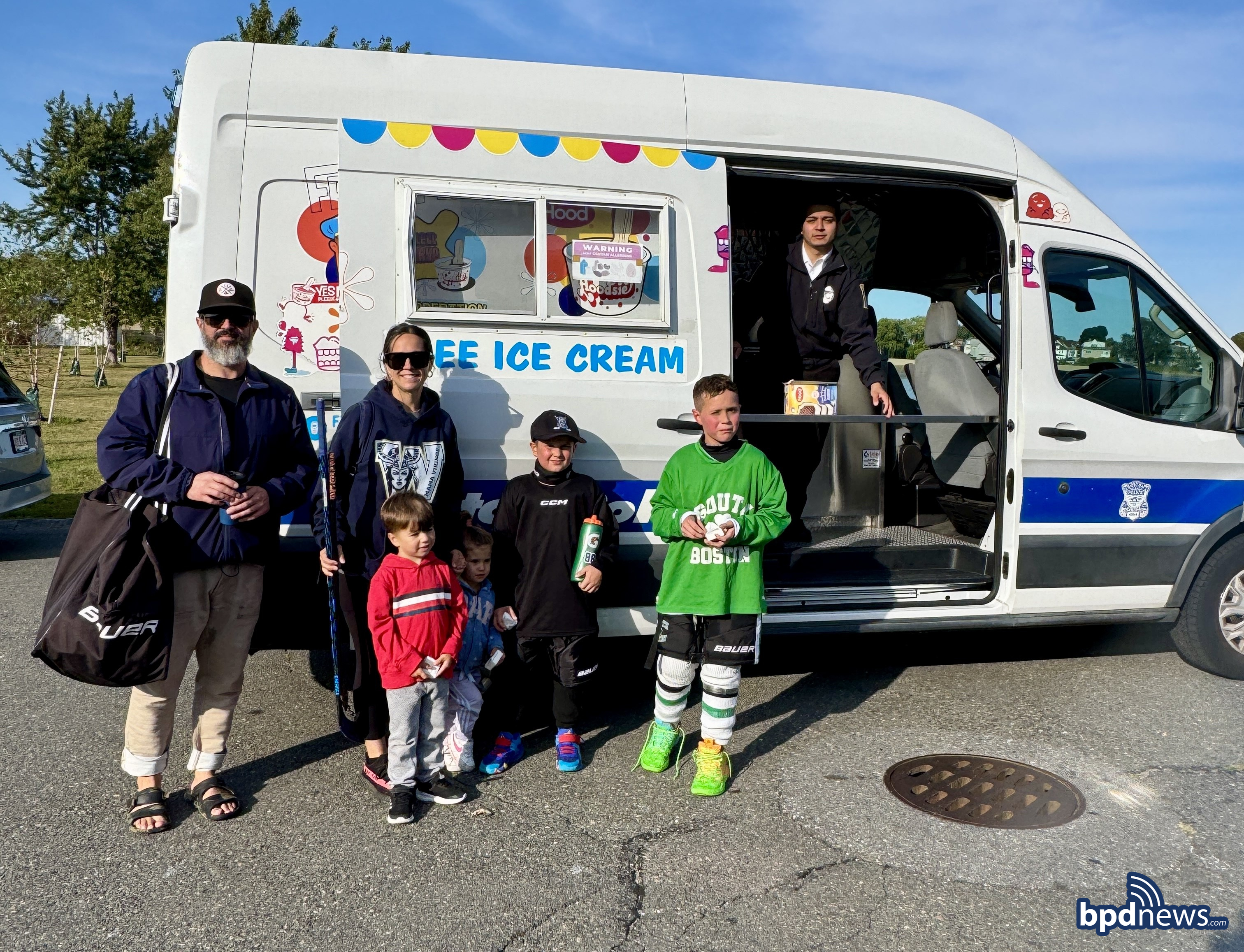 BPD in the Community: District A-7’s Ice Hockey Skills Program Gets Visit From BPD Ice Cream Truck