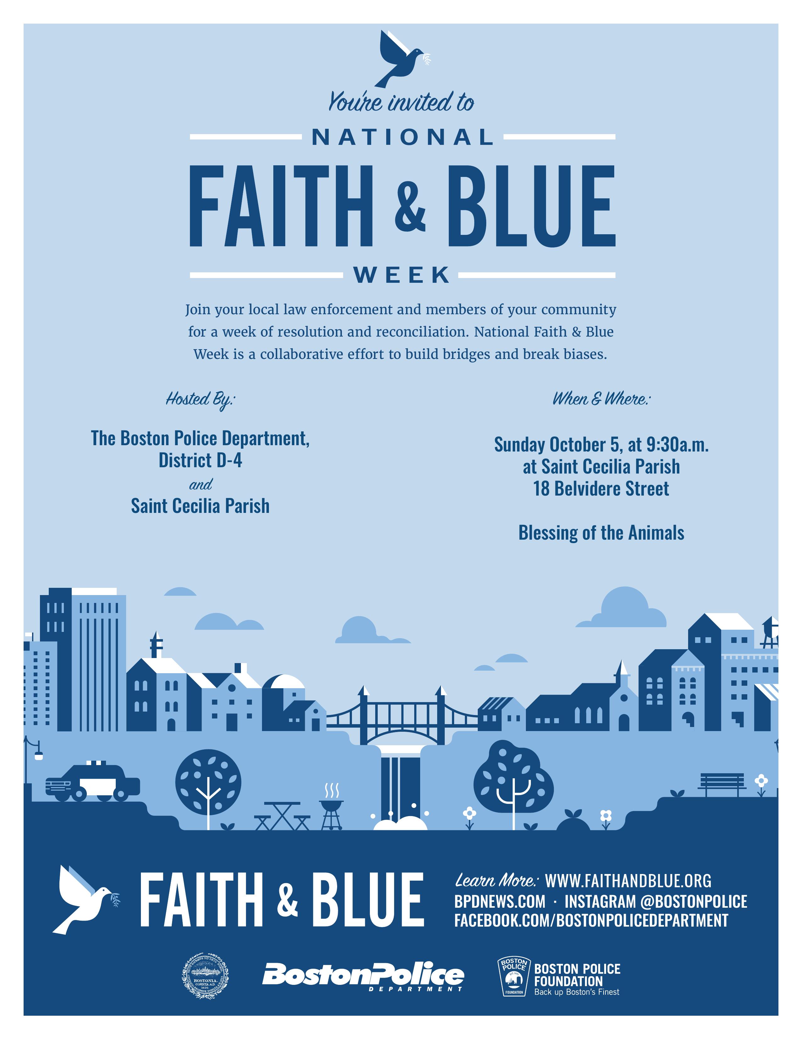 District D-4 and Saint Cecilia Parish present a *Blessing of the Animals* as part of Faith & Blue Week.