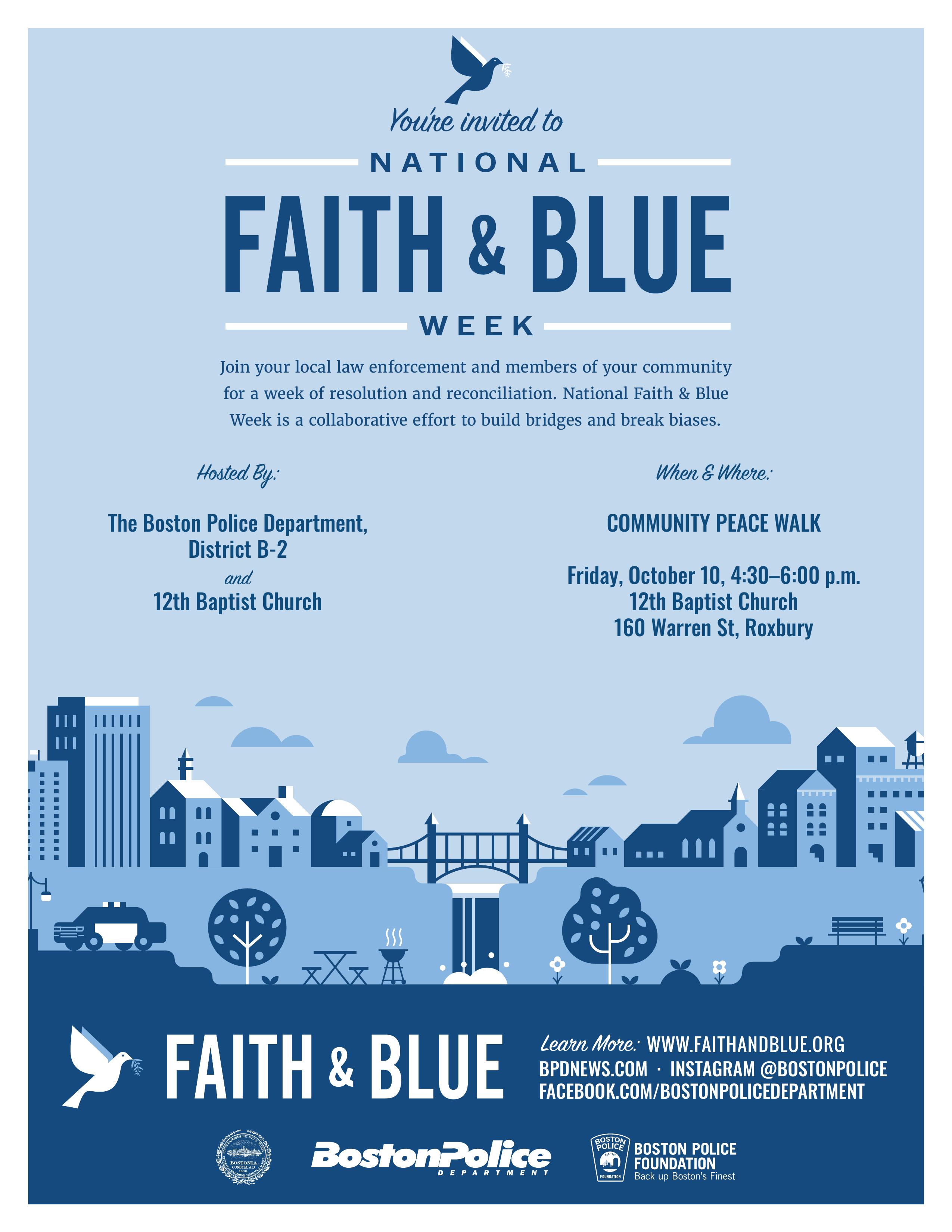 District B-2 and 12th Baptist Church invite you to join us for a *Community Peace Walk* during National Faith & Blue Week.