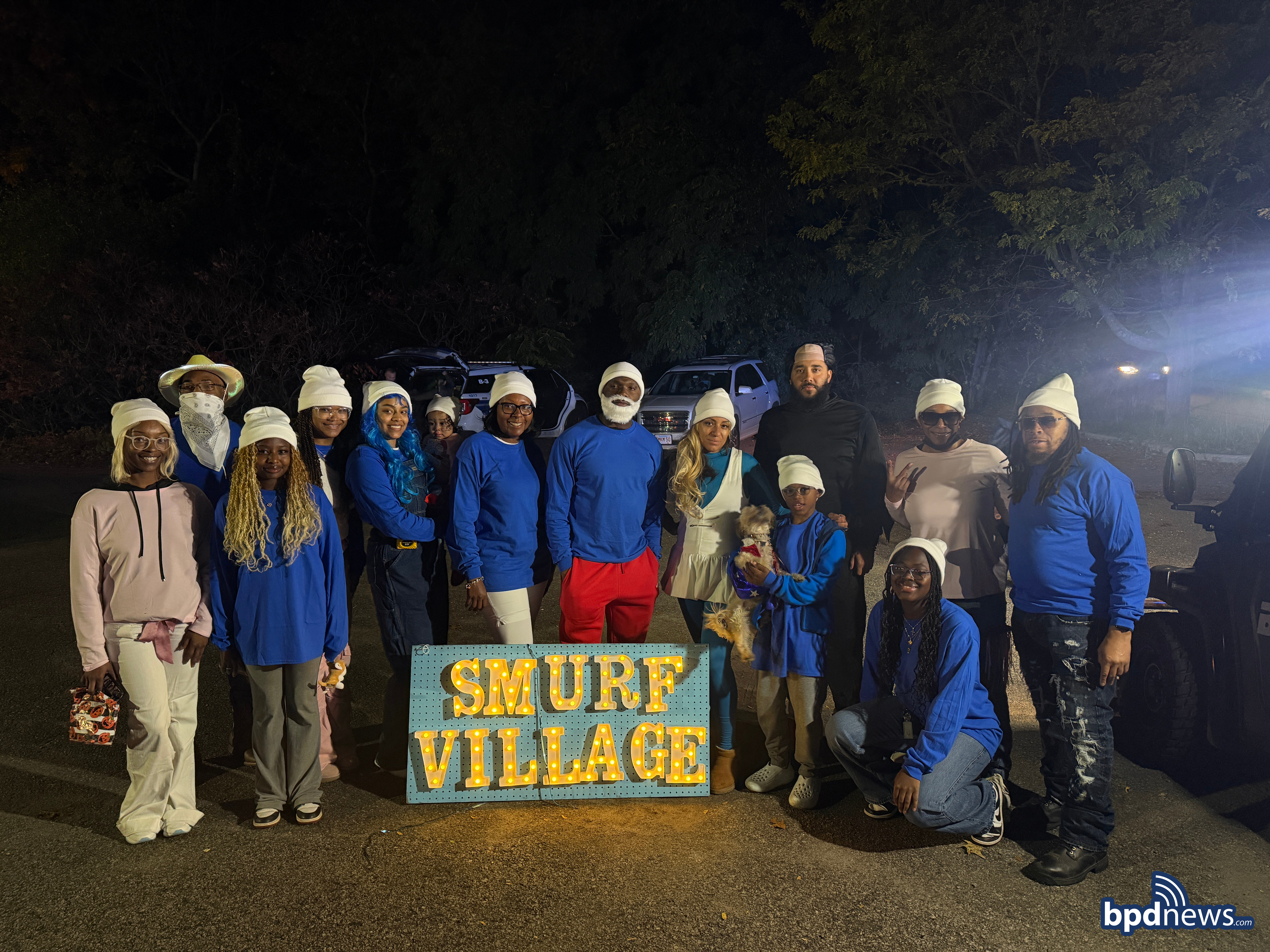 The event was filled with festive Halloween costumes worn by both youth and officers, plus a specially decorated BPD cruiser that matched the officers’ “Smurf Village” theme!