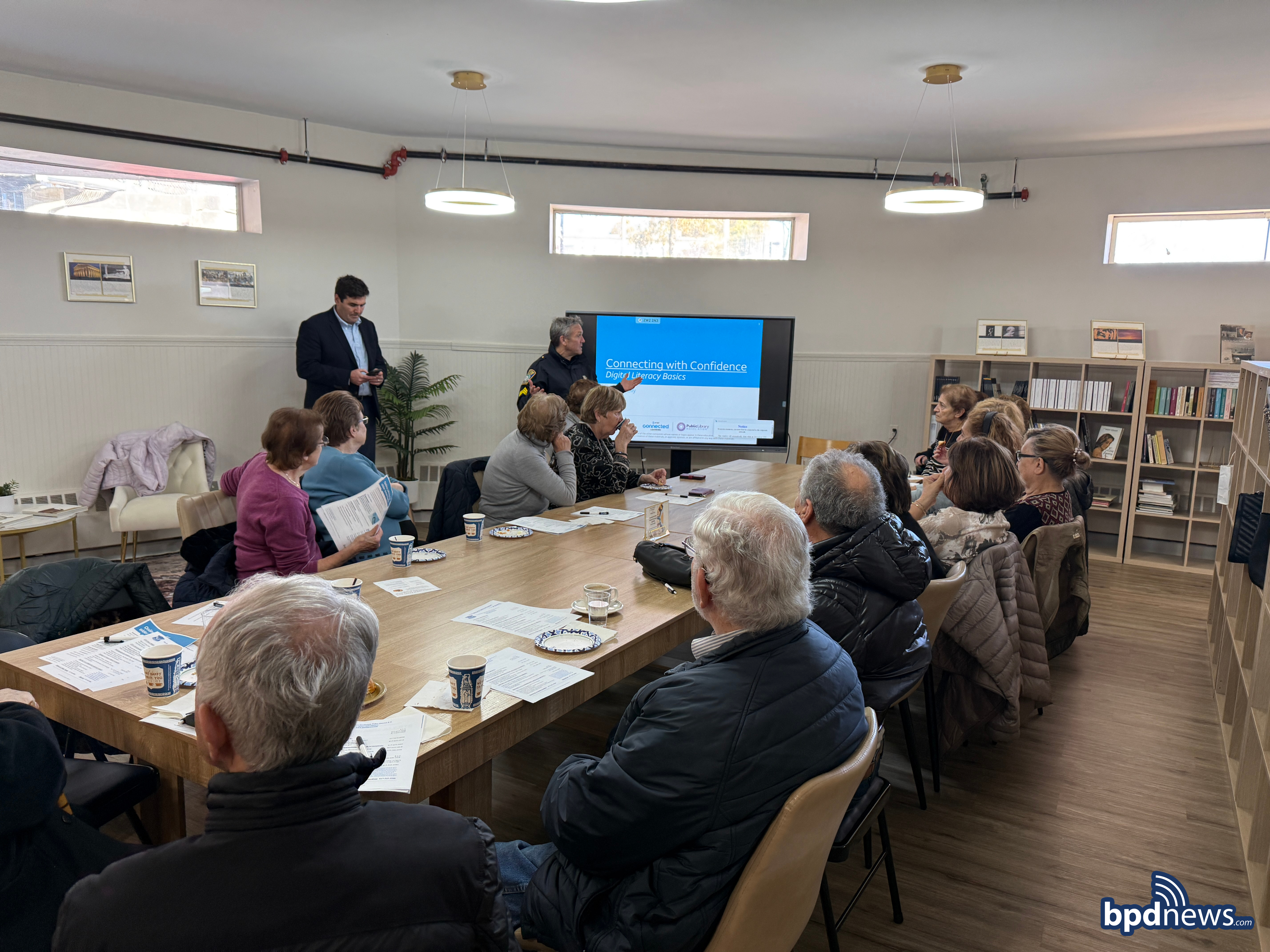 Officers from District E-5 teamed up with AT&T for another Cyber Security Presentation for older residents in Boston; this time it was at St. Nectarios Church in Roslindale.