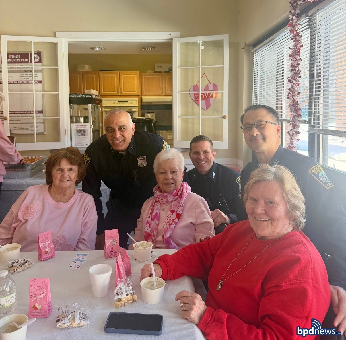 District E-5 Officers joined residents at the Boston Lodge of Elks Senior Center for Valentine’s Musical Bingo, complete with lively music, singing, and even a few dance moves; before stopping by Holy Name Parish School in West Roxbury for arts and crafts, where heart-shaped cookies were the highlight of the day.