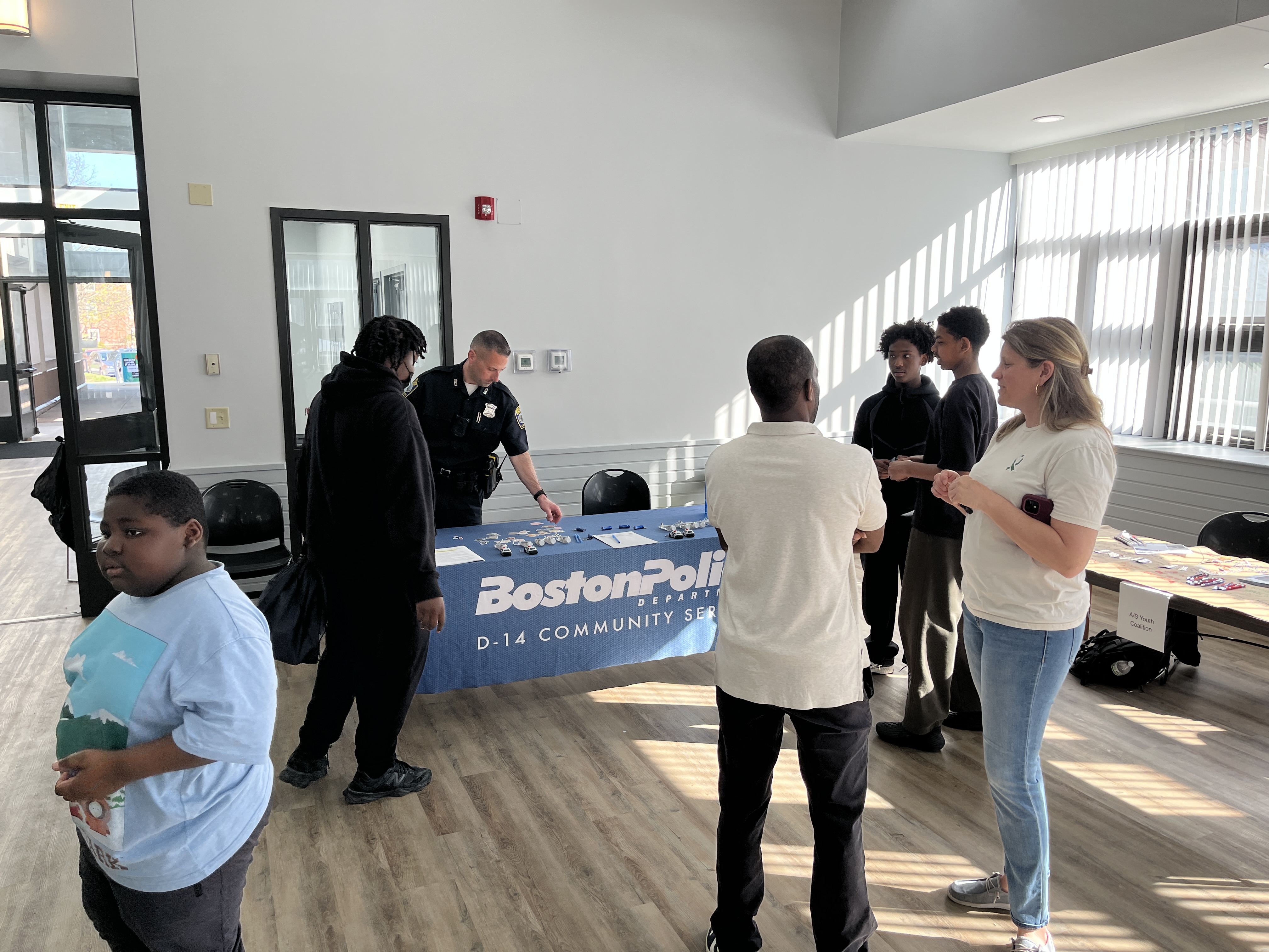 Officers connected with neighbors throughout the event, sharing information about the wide range of career opportunities within the Boston Police Department. They also shared personal experiences, answered questions, and handed out BPD swag for attendees to take home.